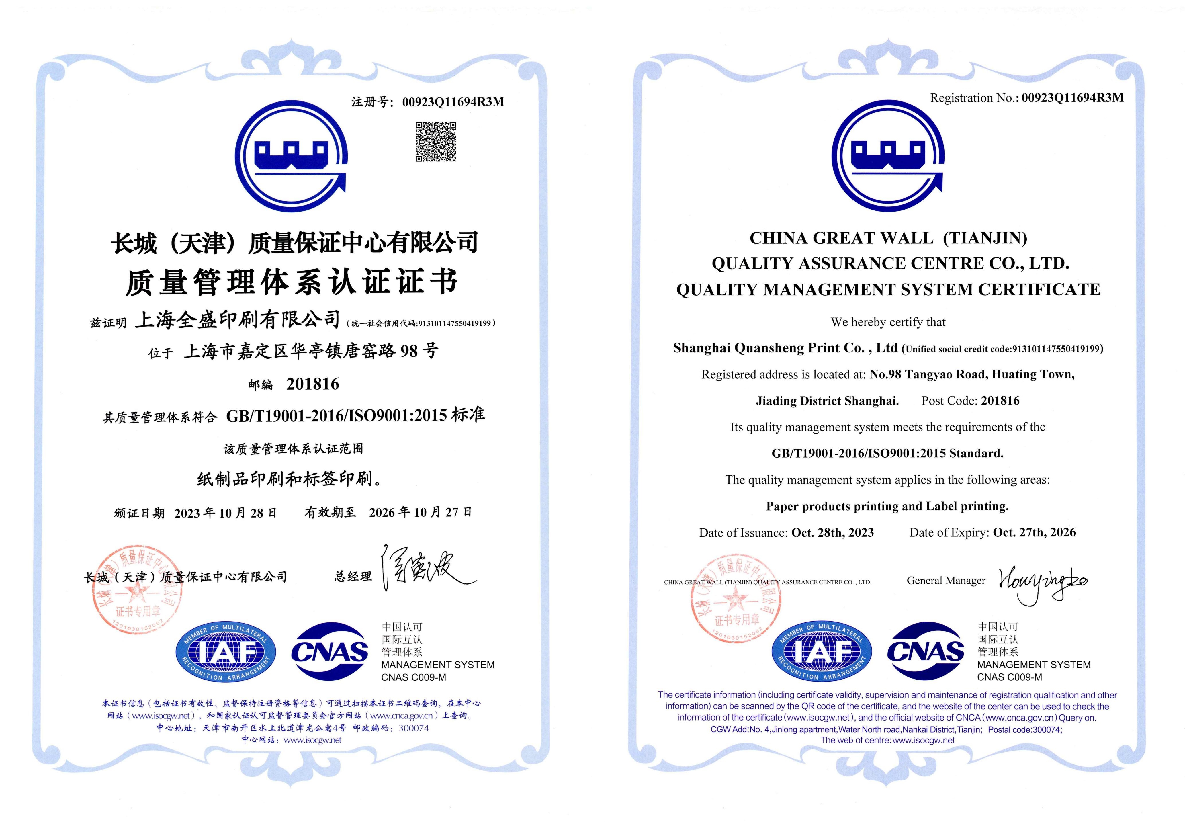 2023.10必一体育结合企业实际情况,建立了一套科学、系统、全面的质量管理体系,获得ISO9001质量管理体系认证证书。